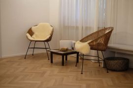 Einrichtungen: Raum ist frisch renoviert und grosszügig. Der Garderobenraum ist grosszügig und zusätzlich nutzbar, siehe Foto.Die Stimmung: sschlicht und klar mit gleichzeitiger Ausstrahlung von Ruhe und Geborgenheit. Freier Blick, Terrasse und Zugang in hauseigenen Park. Eine Oase!