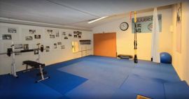 Einrichtungen: Judo Dojo (Trainingsraum) mit grosser Mattenfläche, optimal zum Turnen, Tanzen , für Yoga etc.