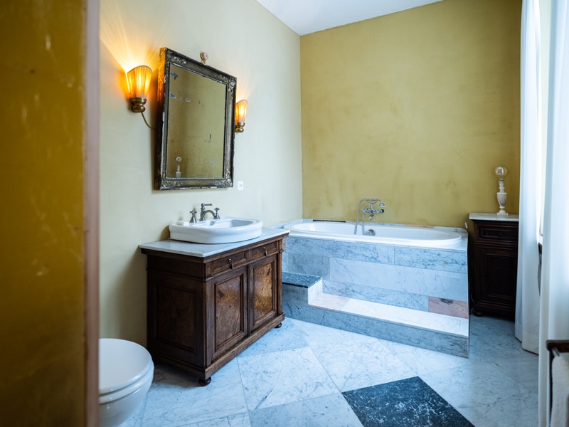 Einrichtungen: Ein Zimmer in französischem Chic, mit edlen Farben und Tapeten, einer kleinen Bar und Kinoleinwand. Elegant und repräsentativ. Für Sitzungen, Team- und Familienanlässe, Lesungen oder einen exklusiven Abend zu zweit. Infrastruktur: Eigenes Marmorbad, kleine Bar, Klavier, Flipchart